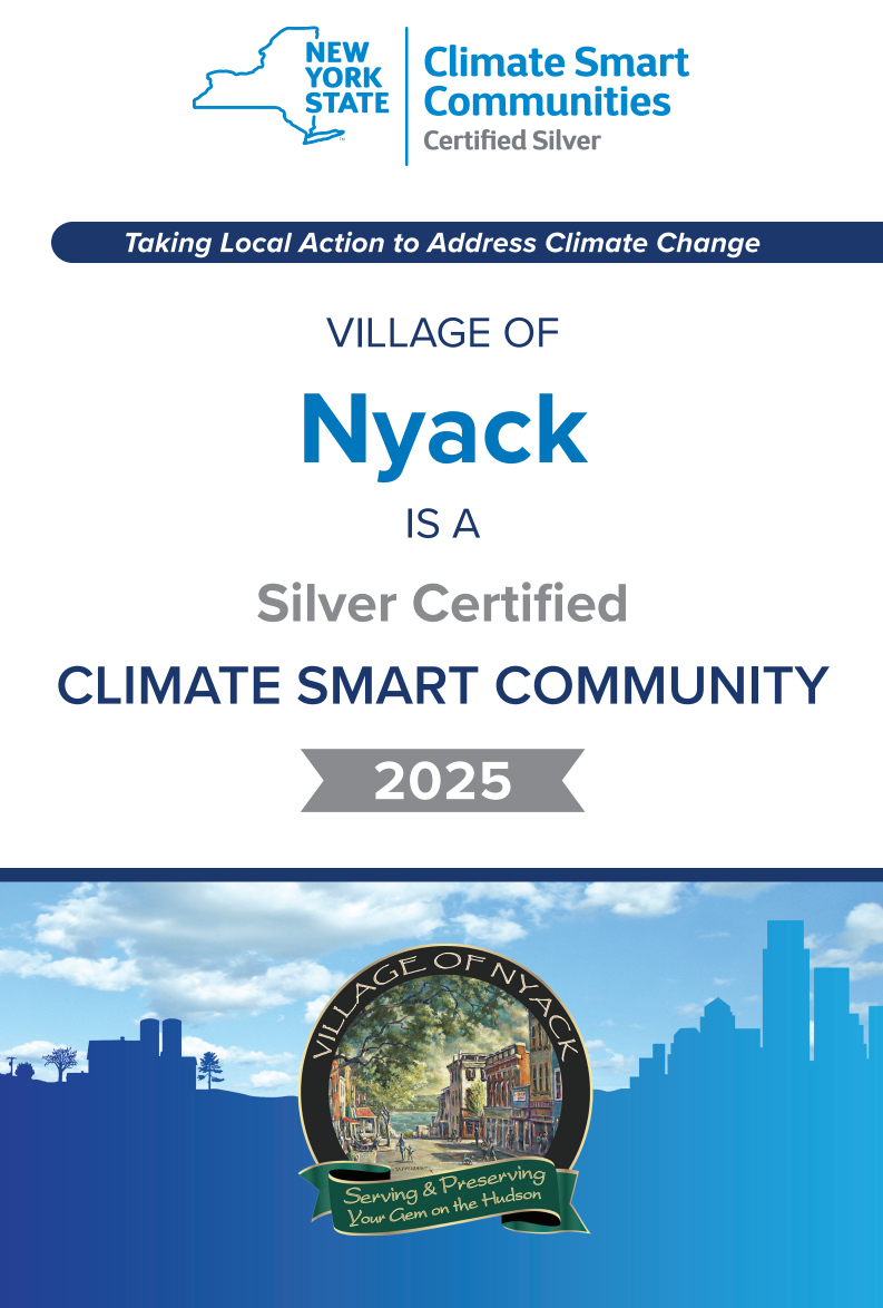 Nyack has achieved “silver” certification —the highest level— in the Climate Smart Communities program. The village is now one of just 21 communities to have achieved that so far in New York State.