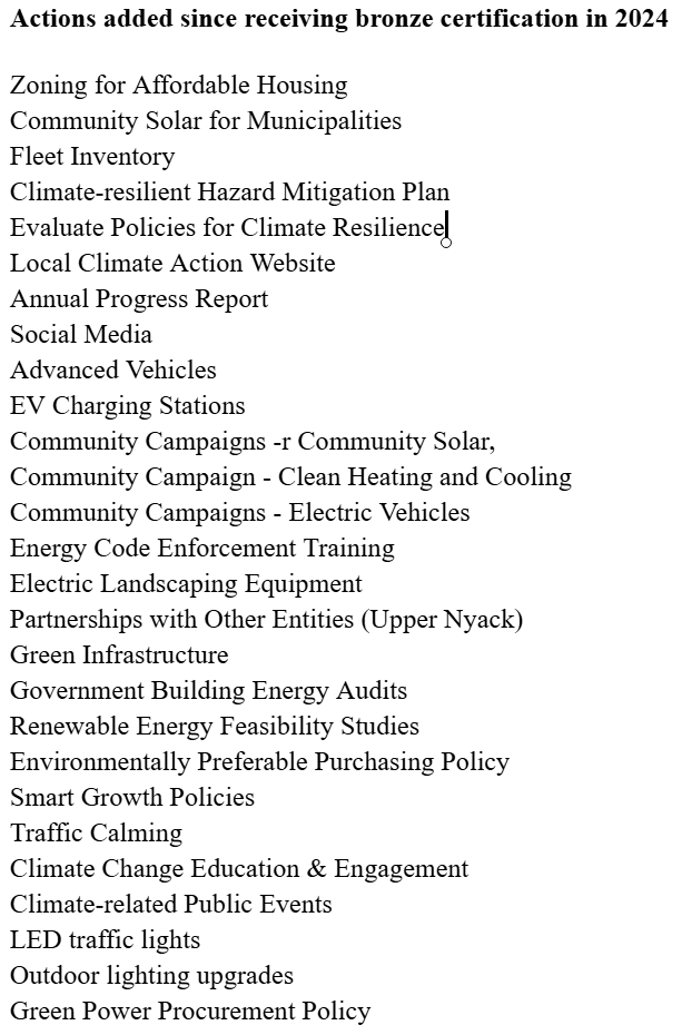 Village Mayor Joe Rand said, “The village couldn’t be more proud of our Climate Smart Committee members on this outstanding accomplishment, especially Co-chairs Marcy Denker and Steve Cea. The Climate Smart Communities program has given us vital guidance, support, and funding for over a decade as we’ve built local capacity for climate mitigation and adaptation that resonates here in the village and beyond We also have many wonderful community partners to thank for their efforts, and we’re deeply grateful for all the support we’ve received from the terrific team at the Hudson Valley Regional Council.”